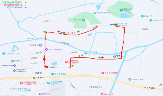 備注:標識“★”為文藝團隊定點(8個)、標識“?”為醫(yī)療點(3個)、標識“●”為飲用水補給點(4個)。