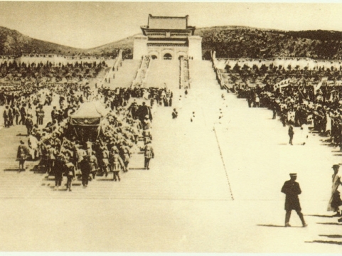 1929年3月10日,梅屋莊吉以自己和萱野長知等人的名義在孫中山靈柩前敬獻的花圈的照片
