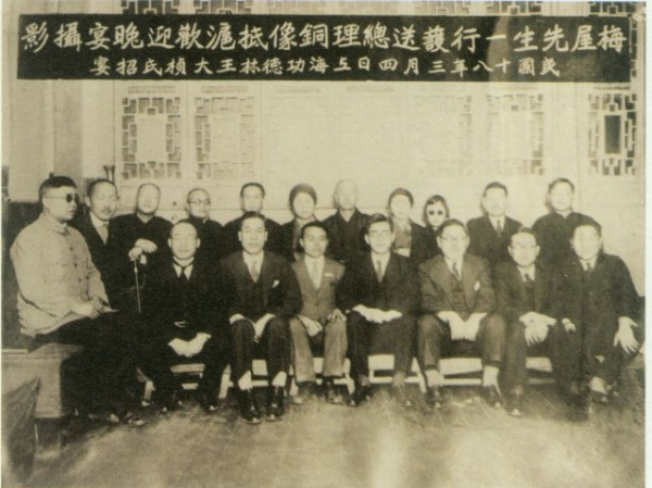 1929年3月4日梅屋等人護送銅像抵滬后在上海功德林舉行的歡迎晚宴合影